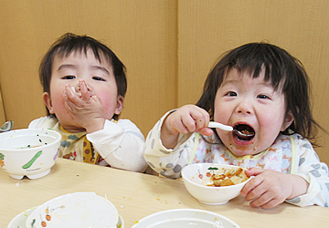 - 院内の管理栄養士が食育や発達を考えて献立を作成しています。