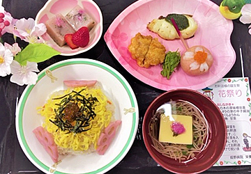 二十四節気をとり入れ年間65回行っています。行事食のお食事には職員が作成したカードもお付けしています。都度ブログを更新しております。度々のぞいてみてください!